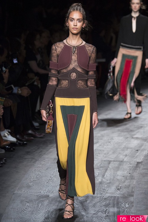 Показ ready-to-wear от Валентино сезона весна-лето успел оказаться в центре общественного скандала: дефиле, посвященное африканской тематике, украсили всего лишь одна-две представительницы темнокожей расы. Злые языки сразу заговорили о расовой дискриминации со стороны организаторов шоу. Но красота и стиль коллекции восторжествовали, а конфликт угас сам по себе. В качестве ведущих мотивов для весны 2016 главные дизайнеры бренда выбрали африканский фольклор. Им пронизаны практически все модели коллекции: воинственные комплекты из кожи, красочные сочетания традиционных африканских цветов (оранжевый, желтый, зеленый, бордовый, черный, синий), принты с животными саванны, этнические украшения из дерева и слоновой кости и пр. Соломенные юбки и оборки, которые встречаются в нарядах коренного населения Африки, дизайнеры бренда заменили многочисленной и разнообразной бахромой. Она украшает почти все комплекты. В одном комплекте могут сочетаться сразу несколько причудливых мотивов и тканей. Разноплановой была и палитра: хаки, бирюза, алый, коричневый, черный и белый – все они могли «подружиться» в одном наряде. Жаркая, энергичная африканская атмосфера стала неплохим фоном для ярких штрихов в духе супрематизма. Ряд моделей украшали актуальные на сегодняшний день сочетания сочных, цветных блоков и полос. В коллекции Валентино можно заметить и легкие, импрессионистические мотивы: на нескольких платьях повторился расплывчатый, словно акварельный рисунок африканского солнца. Одну из ключевых ролей в коллекции играла кожа. Она была хороша сама по себе и в союзе с разными материалами, в том числе такими контрастными ей, как шифон и органза. В финале коллекции публика увидела настоящую весну от Валентино в очень нежных, женственных моделях с преобладанием светлых тонов. Наряды были декорированы тончайшей ручной вышивкой и аппликациями. Так дизайнеры подготовили зрителей к дефиле в рамках высокой моды. Валентино – один из тех брендов, который относится к созданию моделей ready-to-wear так же ответственно и скрупулезно, как и к подготовке комплектов от кутюр. Весенняя коллекция высокой моды от Валентино больше сконцентрирована на античных и азиатских мотивах: силуэты платьев, подобных древнегреческим хитонам, пеплосам, сочетание легких белых тканей и массивного золотистого декора, принты и вышивки с изображением восточных драконов... Мария Грация Кьюри и Пьер Паоло Пиччоли продолжили рисовать свою девушку-весну – воздушную, солнечную, сказочную принцессу из Древней Греции или Древнего Китая... В любом случае это образ уверенной в себе и в своей красоте женщины, умеющей ценить традиции и сочетать их с современными тенденциями моды. В палитре преобладали по-весеннему свежие, легкие оттенки белого, бежевого, кремового, серебристого, зеленого, алого… Черный представлен скромнее, но очень достойно в окружении золота и небесного синего. Судя по последовательности представленных комплектов – от темных к светлым и практически прозрачным тканям, - можно сказать, что дизайнеры марки продемонстрировали публике пробуждение весны и высвобождение ее из зимнего плена. Порадовало и разнообразие тканей, использованных в коллекции от кутюр: парча, бархат, сетка, шифон, шелк, искусственный мех. Дизайнеры довольно смело экспериментировали, сочетая сразу нес