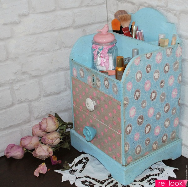 Бьюти-кейсы Если вы не можете пройти мимо косметического магазина, не заглянув в него и не совершив покупку, скорее всего у вас дома накопился целый склад разнообразных помад, теней для век, карандашей. Когда косметики очень много, хранить ее становится непросто, ведь в стандартную косметичку можно положить только самое необходимое. Вам на помощь придут профессиональные бьюти-кейсы. Именно такие используют профессиональные визажисты в своей работе. Плюсов у бьюти-кейсов немало: продуманный дизайн позволяет разместить внутри все виды косметических средств, конструкция бьюти-кейса позволяет быть уверенной, что пудра или тени не «побьются», к тому же, бьюти-кейсы очень вместительны. Конечно, есть и свои минусы: профессиональный бьюти-кейс может стоить достаточно дорого, кроме того, он достаточно громоздкий и в наполненном состоянии не очень легкий. Выбирать бьюти-кейс следует девушкам и женщинам, которые имеют огромное количество косметики и часто переезжают с места на места, либо тем, кто работает в сфере красоты. Органайзеры Вы можете с легкостью создать удобные органайзеры для косметики своими руками. Для этих целей можно использовать как пластиковые коробочки разных размеров, так и плетеные органайзеры или картонные коробки, обитые тканью. Такие коробочки в удобном для вас порядке и размере разместите прямо в ящике стола, а после заполните различными косметическими средствами. Так, в одной коробке будут храниться средства для губ, в другой – тональные средства, в третьей – кисти для нанесения макияжа... С тем же успехом вместо коробочек можно использовать специальные разделители для ящиков, которые продаются во многих магазинах. Данный способ организации имеет множество плюсов: вся косметика аккуратно и компактно разложена, на косметику не оседает пыль и самое главное – косметика убрана с глаз от любопытных детей и домашних питомцев, которые бывают не прочь по-своему разобраться с тюбиком туши или дорогим уходовым кремом. Настольные подставки Удобны органайзеры для косметики в виде настольных подставок. Кроме того, их выпускают очень разнообразного дизайна, что дает возможность найти действительно стильную вещицу, которая станет украшением вашего туалетного столика. Также в зависимости от количества косметики вы сможете подобрать необходимый размер и вместительность настольного органайзера для косметики. Однако такой органайзер больше подойдет для женщин со средним объемом косметички, если же у вас только блесков для губ более 100 оттенков, то, увы, настольный органайзер не в силах будет вместить в себя все ваши богатства. Мини-комоды и шкафы для косметики Думаете, бьюти-боксы и настольные подставки не ваш формат, так как они не смогут вместить в себя и половину ваших средств по уходу за собой и наведению красоты? Тогда пора задуматься о покупке мини комода (в вашем случае, лучше сразу нескольких) или же шкафа для косметики. Мини-комоды часто напоминают своим внешним видом миниатюрный шкаф с огромным количеством ящичков и полочек, где можно разложить свои косметические средства. Конечно, если у вас невероятно много косметики, то и мини-комод сможет не справиться с задачей и не вместить все. Самым вместительным вариантом является специальный шкаф для косметики, в котором можно с удобством разместить не только д