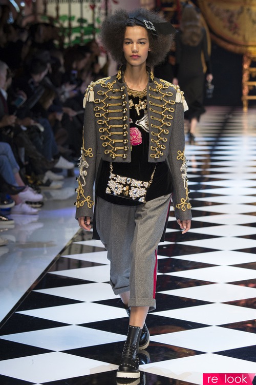 Тренд осенней моды 2016 - стиль милитари Военная форма – неисчерпаемый источник творчества для дизайнеров костюма, ведь она различна в многочисленных государствах мира, в разных родах войск и др. Не удивительно, что в каждом новом сезоне одежда в стиле милитари поражает новизной дизайна при сохранении своих основных признаков по цвету, деталям кроя и декору. Особенностью стиля милитари осенне-зимнего сезона 2016-2017 является женственность, а в некоторых случаях - романтичность моделей одежды. Плюрализм в решении моделей одежды стиля милитари – еще одна характерная черта моды сезона. 1. Модные пальто в стиле милитари Классическое пальто-шинель приталенного силуэта и с двумя рядами металлических пуговиц можно увидеть в коллекции pre-fall бренда Burberry Prorsum: Более актуальны модели пальто стиля милитари фасона Oversize, а также с необычными дополнениями в виде многоцветных ремней, корсетов и др. На фото – модели пальто из коллекций брендов Burberry Prorsum (1-3), Coach (4-6), Prada (7-8), Miu Miu: Элегантно смотрится длинное пальто этого стиля бренда DSquared2: Стильным, военизированным кейпам тоже нашлось место в коллекциях брендов Mulberry, Burberry Prorsum, DSquared2: Удобные, уютные дафлкоты, созданные еще в 1890 году как куртки для моряков, вновь – на пике популярности. Для них дизайнеры предлагают использовать яркие цвета, отличные от традиционной сдержанной цветовой гаммы стиля милитари. На фото – модели дафлкотов брендов Burberry (1) и Ermanno Scervino: Пальто бренда Tommy Hilfiger созданы по мотивам морской формы: 2. Куртки, костюмы, пиджаки в стиле милитари Куртка из коллекции бренда DSquared2, изготовленная из плащевой ткани с камуфляжным принтом, комфортна и выглядит привычно для стиля casual. А вот модели пиджаков бренда Dolce&Gabbana, созданные по мотивам венгерских и гусарских доломанов, смотрятся броско, эффектно и необычно! Сохраняя верность морской теме, Tommy Hilfiger предлагает модели пиджаков, украшенных нашивками и металлическими пуговицами: Строгие костюмы стиля милитари бренда Burberry Prorsum освежает отделка красным кантом: 3. Модные брюки и юбки На модных показах засветились брюки фасона «галифе». Их можно было увидеть в коллекции Victoria Beckham (1) и DSquared2: Если в первом варианте модель брюк смотрится вполне достойно, то модели от DSquared2 – на большого любителя. Романтические модели брюк стиля милитари на высоком поясе были представлены в коллекции Elisabetta Franchi и Burberry: элегантно смотрятся! [ Юбок в стиле милитари, вопреки ожиданиям, не так уж много в коллекциях сезона. По традиции, они украшаются металлическими пуговицами, как эта модель бренда Tommy Hilfiger: Несмотря на использование таких темных тонов, как черный, темно-синий, цвет хаки, модели одежды стиля милитари не смотрятся скучными. Впрочем, встречаются и модели белого цвета, как в коллекции Elisabetta Franchi: Модные модели одежды в стиле милитари разноплановы и многообразны – на любой вкус! Фото с сайта vogue.ru