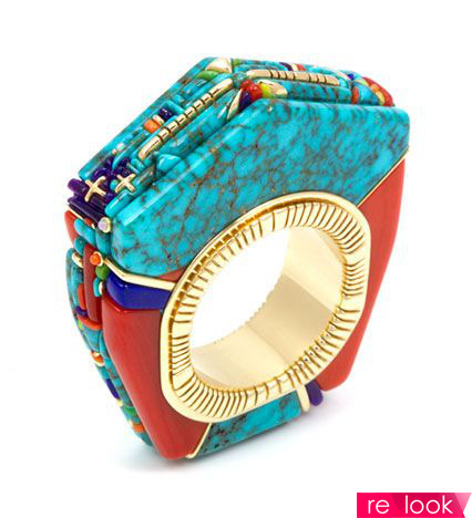 Серебро и бирюза – украшения индейцев Навахо Украшения в этническом стиле е теряют своей актуальности уже на протяжении нескольких сезонов. С их помощью можно за считанные секунды превратить наряд в деловом стиле в нарядный комплект.Особенно популярны у многих дизайнеров сейчас украшения в индейском стиле. Они изготавливаются преимущественно из серебра и натуральных камней. Изначально в процессе создания этих изделий использовали природную бирюзу. Сейчас же можно увидеть модные стилизации с камнями различных цветов и оттенков. Особенно интересно смотрятся работы известного ювелирного мастера Реймонда Яззи (Raymond C. Yazzie). Для создания своих работ он использует мозаичную технику, которой пользовались индейцы племени Навахо. История создания украшений Изделия из бирюзы и серебра индейцы стали изготавливать сравнительно недавно – в 1863 году. Почему мастера использовали исключительно эти материалы? Ответ прост – бирюза по цвету похожа на небо, а серебро – это священный для индейцев металл. По мнению шаманов, такие амулеты помогали защищать людей племени от злых духов. Местные жители стали изготавливать серебряные украшения после того как капитан Генри Додж привёз в форт Дефианс мастера из Мексики, который работал с этим металлом. Отмечу, что этот форт находился на территории земель индейцев племени Навахо. В качестве материала для изготовления украшений в самом начале использовали серебряные монеты. Своей популярностью изделия индейцев Навахо обязаны кочевникам Равнин. Именно они первыми стали обрабатывать серебро по мексиканской технологии. Обычно Навахо делали украшения из цельного куска металла, поэтому они были достаточно массивными. Украшала их мозаика из натуральных камней. Мастера выкладывали на изделиях изображения птиц, растений, бабочек и мифических существ. После того как на юго-западе США построили железную дорогу американцы стали приезжать в земли индейцев. Там они могли посмотреть на украшения, выбрать что-то для себя и купить. Таким образом, об изделиях индейцев Навахо узнали в странах Европы. Кроме этого появление европейцев позволило индейцам улучшать свои изделия и оттачивать мастерство. С континента люди привозили инструменты для обработки металла, обучали местное население штамповке и чеканке, а также новым способам крепления камней к металлической основе. Украшения в стиле Навахо от Реймонда Яззи Реймонд Яззи с раннего возраста занимается изготовлением и разработкой дизайна для ювелирных украшений. Его предки – это индейцы племени Навахо. Вот почему мастер создаёт свои работы именно в этно-стилистике. Его работы не однократно можно был увидеть на различных международных выставках. Не так давно украшения от бренда Raymond C. Yazzie были представлены в Национальном музее американских индейцев в Нью-Йорке. Отмечу, что в работе над этой коллекцией принимала участие сестра Реймонда – Ли. Для того чтобы создать эти уникальные украшения они использовали: - золото; - серебро; - натуральные камни. Всё в лучших традициях Навахо. Стоимость изделий варьируется в пределах от 20 до 3 тыс. долларов. В экспозиции были представлены серьги, браслеты, ожерелья и даже булавки для галстуков изготовленные в технике мозаики. Её главная особенность – это наличие большого количества мелких деталей. Для создания такого