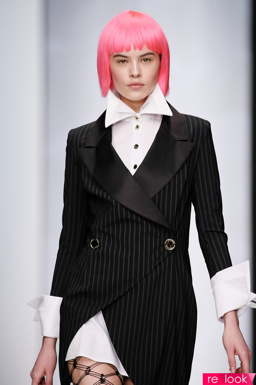 Коллекция дизайнера несколько удивила: носить пуховик поверх купальника в России не принято - замерзнуть можно! В целом коллекция понравилась: цветные волосы, эффектные ботфорты, яркие шубы, обувь разных цветов на правой и левой ноге… Смело, футуристично, весело! Вот, например, цветовая гамма для волос: А это – ботфорты: каких здесь только нет! И из меха, и из пластика, и из серебристой кожи, и - со стразами! Есть даже модные ботфорты-носки, точнее - гольфы: А вместо моделей по подиуму ходили подружки дизайнера - актрисы Настасья Самбурск5ая и Наталья Рудова: Прямо Турцию вспомнила: там предлагали всем желающим демонстрировать кожаные вещи на подиуме в одном из магазинов. Я тоже там была моделью! Хоть и объявлен главным цветом года зеленый, но в коллекции Беллы Потемкиной царит ярко-розовый цвет и фуксия! Костюмы, колготки, ботфорты, кюлоты, шуба, блузка и др. – все выполнено в этих тонах! Цветовая гамма коллекции включает также, кроме розового и фуксии, глубокий фиолетовый цвет и традиционные монохромные тона. В коллекции много изделий из эко-меха, изготовленного из волокна Kanecaron, с японской фирмой-производителем которого дизайнер заключила контракт. Из меха изготовлены не только шубы, но и другие элементы костюма - сумки, ботфорты, ромперы. Автор смело использует различные материалы, включая пластик: Креативно смотрятся очки, предлагаемые дизайнером: Не обошла вниманием дизайнер и вечернюю моду: Смелая, футуристичная, необычная коллекция Беллы Потемкиной порадовала яркими красками и новыми идеями. Фото с сайта bellapotemkina.com