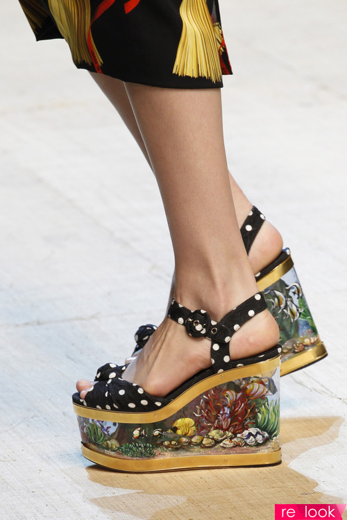 Хит моды лета 2017: прозрачная обувь Обувь, изготовленную из прозрачных материалов, нельзя назвать новинкой, ведь первые попытки ее популяризации были сделаны еще в 2011 году самим Кристианом Лабутеном. В 2013 году обувь с прозрачным верхом уже была хитом летней моды: вот предложение того времени от дизайнера Michael Kors:Осенью 2016 года в моде были прозрачные ботинки для дождливой погоды. Как это часто бывает, предложение поступило от известного дизайнера, а подхватили идею предприниматели из Поднебесной. В противовес дорогостоящей модели ботинок от Софии Вебстер (1), они наладили выпуск недорогих изделий: Важным достоинством моделей прозрачных ботинок является возможность сочетать их с одеждой любого цвета благодаря носкам, которые можно менять по необходимости. В течение нескольких лет в моде были актуальны прозрачные каблуки: в летних моделях обуви они придавали легкость женским образам, в зимних изделиях – еще и сходство с сосульками. В моде лета 2017 встречаются все варианты прозрачности обуви. 1. Абсолютно прозрачная обувь Обувь с прозрачным верхом и низом смотрится сказочно красиво: Вряд ли она порадует своих обладательниц комфортом: силикон не приформовывается к стопе, как натуральная кожа, поэтому могут появиться потертости. Но сногсшибательный внешний вид такая обувь точно обеспечит! Сложностей с сочетанием обуви и одежды не возникнет: прозрачная обувь будет гармонировать с любым цветом, как модели тона Nude. 2. Модная обувь с прозрачным низом В летней моде актуальна также обувь на прозрачной платформе, позволяющая своим обладательницам как бы «парить» в воздухе, а не просто ходить по земле. Модели обуви с прозрачной платформой можно увидеть в коллекциях Balmain и Dolce&Gabbana: В прозрачной платформе можно "замуровать" цветы, растения, насекомых или целый аквариум! 3. Модная обувь с прозрачным верхом Можно сделать наоборот: верх прозрачный, а низ - нет. Таких моделей обуви очень много: 4. Модная обувь с прозрачными вставками Модели обуви, в которых прозрачные вставки комбинируются с деталями из кожи с различным фактурным решением – отличный способ спрятать недостатки стопы, но при этом остаться в тренде моды. 5. Цветная прозрачная обувь Цветные прозрачные босоножки можно увидеть в коллекции бренда Miu Miu: смотрятся, как леденцы! Прозрачность в обуви – не новинка, но и надоевшим решением ее назвать нельзя! В такой обуви есть возможность обратить на себя внимание окружающих! Фото с сайтов vogue.ru, ktm-ek.ru, aapindia.im, wmj.ru, differed.ru, prowclothing.ru, aliexpress.com
