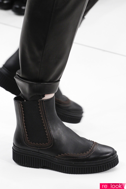 Модная закрытая обувь осени 2017: ботинки и ботильоны С наступлением первых холодов женщины в ансамбль костюма включают закрытую обувь. Лучшей обувью для осеннего периода носки являются ботинки и ботильоны. Отличаются они друг от друга незначительно: ботильоны чуть выше ботинок и более изящно смотрятся благодаря конструкции. Какие же модели этой обуви актуальны осенью 2017?1. Модные ботинки со шнуровкой В моде – ботинки мужского типа с тяжелой, рифленой подошвой и шнуровкой. Форма носочной части в таких моделях умеренно расширена, хотя мода держит курс на заужение носка. Шнуровка – самый актуальный способ закрепления ботинок на ноге, хотя в некоторых моделях могут использоваться дополнительно застежки-молнии с внутренней стороны стопы для удобства и быстроты надевания. Модели мужского типа можно увидеть в модных коллекциях брендов Altuzarra (1-2), Tod’s: Более изящно смотрятся модели ботинок со шнуровкой брендов Giorgio Armani, Salvatore Ferragamo (2-5), Christian Louboutin, Atlein, имеющие высокие, утолщенные каблуки: Встречаются в коллекциях сезона и модели ботинок с зауженной носочной частью, как у брендов Acne Srudios, Giorgio Armani: 2. Модные ботинки с боковыми резинками Подобные конструкции ботинок были популярны в мужской моде XIX века, поэтому они тоже выполняются в мужском стиле. Изменение цвета резинки по сравнению с тоном модели в целом позволяет создать определенный декоративный эффект. На фото показаны ботинки брендов Louis Vuitton (1-3), Tods: Совсем по-другому смотрятся ботинки данной конструкции, выполненные из материала с серебристой фактурой бренда Loewe: 3. Модные ботинки с застежками-молниями Эти застежки не видны, потому что они расположены с внутренней стороны стопы. Подобные модели ботинок встречаются в коллекциях Lanvin (1-2), Ellery: 4. Модные ботильоны Элегантные ботильоны на тонких шпильках предлагаются брендами Alexander Wang, Balmain, Moscino, Gianvito Rossi: Однако, устойчивый каблук более предпочтителен для повседневной носки, как предлагает бренд Ellery: В этом сезоне дизайнеры обратили особое внимание на форму каблука, так что для любителей эпатажа есть что взять на заметку. На фото – модели ботильонов с каблуками оригинальной формы брендов Salvatore Ferragamo (1-2)и Ellery: Модели модных ботинок и ботильонов отличаются сдержанностью и лаконичностью дизайна, однако разнообразны по форме носочной части и каблука, применяемым материалам и цветам – есть из чего выбрать! Фото с сайтов wlooks.ru, vogue.ru