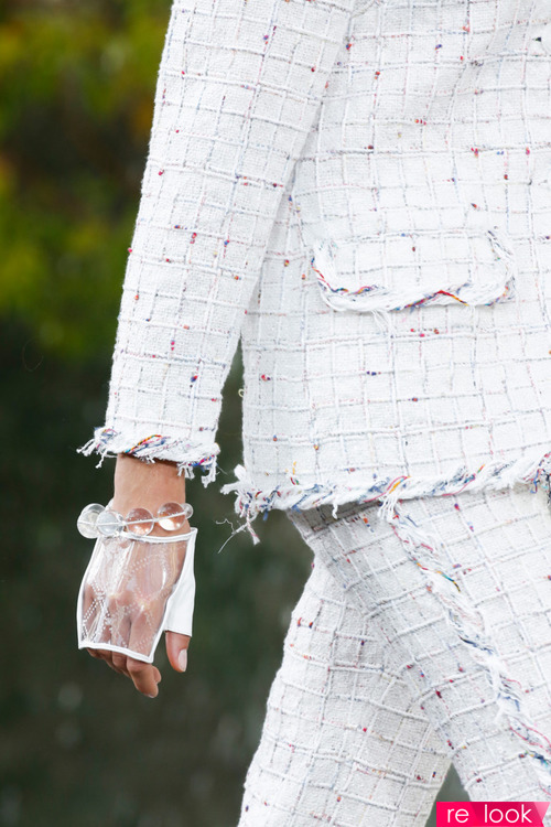 Эко-кожа является прекрасной заменой натуральной кожи и представляет собой хлопковую ткань, покрытую слоем эластичного полиуретана. Этот материал практически неотличим от натуральной кожи и по виду, и по свойствам, так как обладает паро- и воздухопроницаемостью. Однако, в моде - лаковая эко-кожа, а это значит, что свойства материала кардинально меняются в худшую сторону. Не стоит радоваться приставке «эко»: материал просто будет иметь хлопковую основу, и все! Лаковая пленка не будет пропускать ни пары пота, ни воздух из окружающей среды, значит, нарушится нормальный воздухообмен, пот будет скапливаться под этой одеждой, вызывая раздражение кожи. На фото - модель одежды из лаковой эко-кожи бренда Calvin Klein: Дизайнеры предлагают изготавливать из прозрачного пластика в виде пленки все: шляпы, плащи, куртки, платья, обувь, сумки и др. Конечно, в ненастную погоду тоже приходится куда-то идти, а зонт мало спасает от струй дождя, идущих под углом. В результате приходишь к месту назначения вся мокрая, а батареи летом холодные, просушить одежду на себе можно только феном, если он с собой. Можно, конечно, попробовать попроситься на кухню какого-нибудь кафе, где есть горячие плиты, но скорей всего не пустят из санитарных соображений. Есть еще вариант: парикмахерская, но это – как повезет, может рядом и не быть такого заведения. Вот для таких тяжелых случаев вполне подойдет одежда, предлагаемая в коллекциях весна-лето 2018 – из прозрачных пленок и лаковой эко-кожи. Давайте посмотрим творения дизайнеров из этих влагозащитных материалов. 1. Плащи и куртки Плащи-дождевики – самый удачный вариант модной одежды сезона из пластиков и эко-кожи: надежно защищают от дождя и выглядят ярко, красиво, модно! В серый, ненастный день женщина в таком плаще будет смотреться эффектно, создавая позитивное настроение себе и окружающим ее людям. На фото – модели плащей из коллекций брендов Chanel, Marc Jacobs, Toga, Calvin Klein, Assembly, Ellery, Balmain, Ralph Lauren: Куртки из пластика хуже, чем плащ, будут защищать тело от дождя, но в сырую погоду тоже будут нормальной одеждой. А вот в солнечные дни весны от них не стоит ждать комфорта. На фото – модели курток из коллекций брендов Valentino (1-2), Bottega Veneta: 2. Платья, блузки, костюмы и топы Изделия из прозрачных пленок и лаковой эко-кожи смотрятся современно, оригинально, необычно. Возможно, в прохладные дни лета их можно будет носить без серьезных неудобств. А вот на юге это совершенно исключено! На фото – модели одежды из коллекций брендов Fendi (1-2), Ellery (3-5), Acne Studios (6), March & March (7), Calvin Klein (8), Toga: 3. Аксессуары и обувь Прозрачные сапоги, туфли, босоножки – тоже в тренде моды. Они позволяют создать эффект «barefoot»: вроде босая, а – на каблуке! Модели обуви из прозрачных пленок в изобилии представлены брендами Chanel (1-3), Alexander Wang (4-5), Giorgio Armani (6-7), Oscar de la Renta (8-9), Valentino: Вряд ли такая обувь может обеспечить комфорт ногам, но эффектный внешний вид будет гарантирован! Сумки могут изготавливаться из чего угодно, поэтому пластик вполне уместен как основной материал для этих изделий. На фото – сумки брендов Chanel (1-3) и Valentino: Шляпки и капюшоны от дождя предлагает бренд Chanel: Митенки и перчатки из прозрачных пленок - просто бредовая фантазия Карла Лагерфельда: зачем они нужны? Одежда, обувь и аксессуары из пластика и лаковой эко-кожи позволят создать оригинальный внешний вид женщине, но я бы лично 