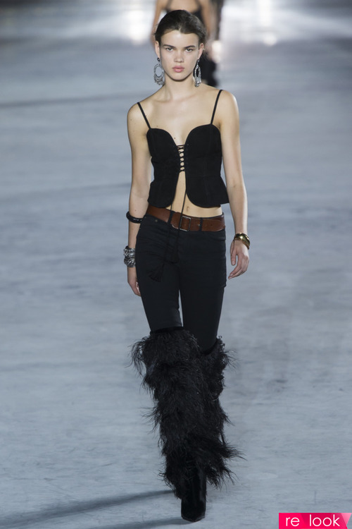 1. Как выбрать цвет обуви? Подбирая обувь к ансамблю костюма, в первую очередь необходимо определиться с ее цветом. Долгое время считалось, что для повседневной носки необходимо выбирать обувь нейтральных тонов, органично сочетающихся с видами одежды различных цветовых решений. Такими цветами являются черный, белый, оттенки серого, бежевого, коричневого тонов. В наши дни отношение к цвету повседневной обуви изменилось: она может иметь любой, самый яркий цвет. В таком случае большое значение имеет степень закрытости обувью ноги человека. Например, ботинки и ботильоны, высота которых заканчивается чуть выше щиколотки, визуально укорачивают ноги, так как образуют заметное поперечное членение нижних конечностей. Чтобы нивелировать эффект укорочения ног рекомендуется выбирать цвет ботинок и ботильонов в тон цвету колготок или брюк. Туфли, закрывающие стопу незначительно, не оказывают существенного влияния на восприятие длины ног. Однако, с некоторых пор стало модно использовать туфли телесных оттенков, совпадающих с цветом колготок именно на основании того, что такие туфли способствуют зрительному удлинению ног. Высокие сапоги могут стать эффектным акцентом в композиции костюма, если женщина имеет стройные и длинные ноги, как в ансамбле костюма от Versace (1). Обычная практика – выбор цвета сапог в тон колготок, как предлагает бренд Balmain: 2. Как подобрать туфли к ансамблю костюма? Туфли – самая многочисленная группа женской обуви, в которую входят модели закрытого типа, туфли-лодочки, туфли с открытой носочной и пяточной частями, модели с череспоъемными и Т- образными ремнями и др. Обувь для повседневной носки должна быть удобной, поэтому рекомендуется выбирать модели с расширенной носочной частью на низком или среднем каблуке. Повседневные туфли должны иметь регулируемый способ закрепления на стопе с помощью чересподъемных ремней или эластичных резинок. Их сочетают с узкими, слегка укороченными брюками или с юбками. Надо заметить, что более гармонично с юбками смотрятся туфли на каблуке. Туфли-балетки, имеющие приподнятость пяточной части 5 мм, удачно смотрятся только в костюмах юных девушек. Известно, что Карла Бруни, бывшая первая леди Франции, носила балетки и как повседневную, и как вечернюю обувь. Вот она на фото: Высокие и стройные женщины могут носить такую обувь без ущерба для имиджа, но для основной массы женского населения балетки не подходят: делают фигуру приземистой. Кстати, с точки зрения здоровья стопы балетки – не очень подходящая обувь, так как имеют низкую приподнятость пяточной части. Со временем у женщины могут появиться пяточные шпоры из-за перегруженности заднего отдела стопы. Туфли-лодочки черного цвета на тонких шпильках признаны самой сексуальной женской обувью – это мнение мужчин. Такая обувь (не только черного цвета) используется при создании вечерних образов. Ходить в обуви на шпильках без опасности навредить здоровью организма можно только 3-4 часа в сутки, так как ноги сильно устают от напряжения. Туфли-лодочки отлично сочетаются с платьями и юбками различной длины, а также с леггинсами, узкими, укороченными брюками-дудочками. Широкие, длинные джинсы и брюки с такой обувью сочетать не стоит. Туфли с открытыми носочной и пяточной частями можно носить с легкими летними платьями или с вечерними на