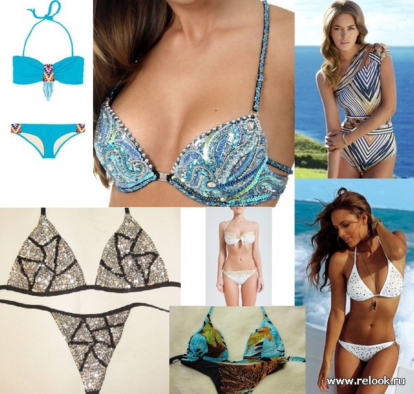 Если купальник вам нужен, то его надо или купить, или сделать самостоятельно. В обоих случаях, возможно, вам захочется не просто купальник, а модный. Это лето достаточно демократично подошло к формам, тканям и назначению купальников. Обратите внимание на белые купальники. Они, на мой взгляд, лучше всех подчеркнут ваш чудесный загар. Яркий спортивный купальник выгодно подаст вашу спортивную фигуру и владение всеми стилями плавания. Возможно, после года тяжкой работы вас порадует тропическая или фантазийная расцветка. Неуверенным в своей привлекательности может помочь «звериный» купальник. Изысканный орнамент пейсли (огурцы) раньше могли позволить себе лишь очень знатные граждане далёких стран. Купальники в полоску будет недурно смотреться на яхте в первую половину дня. Купальники, расшитые бисером, украшенные стразами или вышивкой будут, конечно, более уместны на вечеринке – на пляже или на той же яхте. Вязаные (или плетёные) купальники – отличный шанс для рукодельниц получить модную вещь, соединив в ней упомянутые выше тенденции, все сразу или частично. Коллажи Ingigerda по материалам lady.mail.ru, turneinfo.ru, olx.com.ua, nsemenova.ru, zhaneta.ru, anita-active.ru, pix.com.ua, gentlewear.ru, fitness-lingerie.ru, corset.com.ua, be-in.ru, feel-best.ru, liveinternet.ru, beautyhill.ru, alenmark-shop.ru, beauty-guru.ru, clothingshoes.ru, modelsecrets.ru, polyvore.com, fashiontime.ru, gloria-jeans.ru, v-krujevah.ru, igrivoe-nastroenie.ru, namewoman.ru, lookatme.ru, ua.all.biz, baby.ru, ewomans.com, club.season.ru, underwear-mag.net, ona-znaet.ru, knitka.ru, tamica.ru, feminastyle.ru