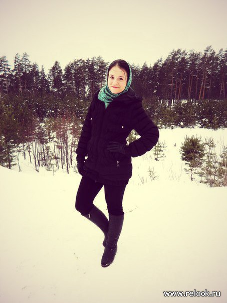 Так мы праздновали День Рождения моей подруги, с которой к тому же живем в общежитии: ездили в ее родной поселок, окруженный волшебным хвойным лесом. Свежий воздух и море эмоций -- что может быть лучше!!! Вот такого красавца мы слепили с друзьями: Вместо морковки--палка, а на голове стильная шапочка. И посмотрите, какая шикарна улыбка! Теперь стоит около дороги и радует прохожих: Куртку мне одолжила подружка, поэтому ее марку я не знаю. Сапожки no name, брюки Bershka А этот платочек я приобрела во время пребывания в Индии. Очень теплый) Спасибо за внимание)))