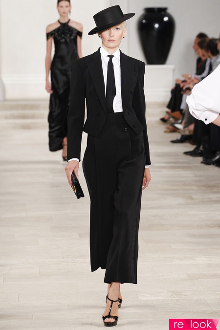 Если бы Кармен жила в современном мире, должно быть, она выглядела именно так, как модели Лорена - подчёркнутая женственность, облачённая в болеро матадора, брюки-галифе или кожаные брюки с бахромой, двубортные классические костюмы, романтические сарафаны с кожаными куртками - романтика брутальности. Испанские мотивы отчётливо прослеживаются во всей коллекции - воланы и оборки, пончо, алые розы в качестве брошей, шляпы и береты, платки и декольте. Фото: style.com