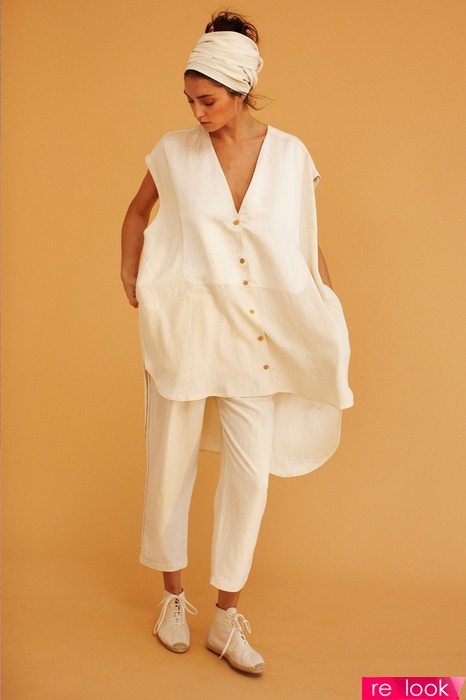 Именно такой предстала она на презентации коллекции в шароварах, кафтанах, комбинезонах и летящих туниках.