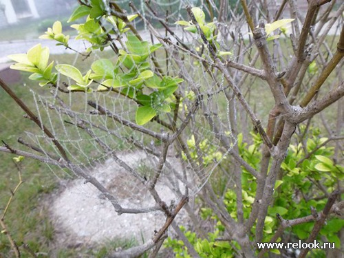 , о котором очень просила Полечка в моейпредыдущей прогулке "Доброе утро, природа!" - найти и "явить в студию" творца и мастера причудливых и больших паутин,