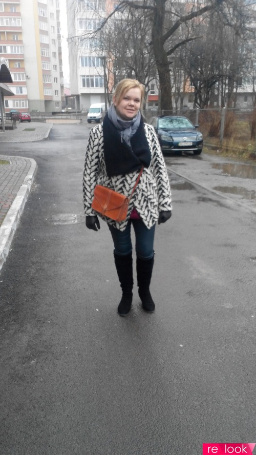 В первом образе к пальто подобрала серые джинсы а-ля кожа и ботфорты, не скажу что я себе тут очень нравлюсь, но может быть.